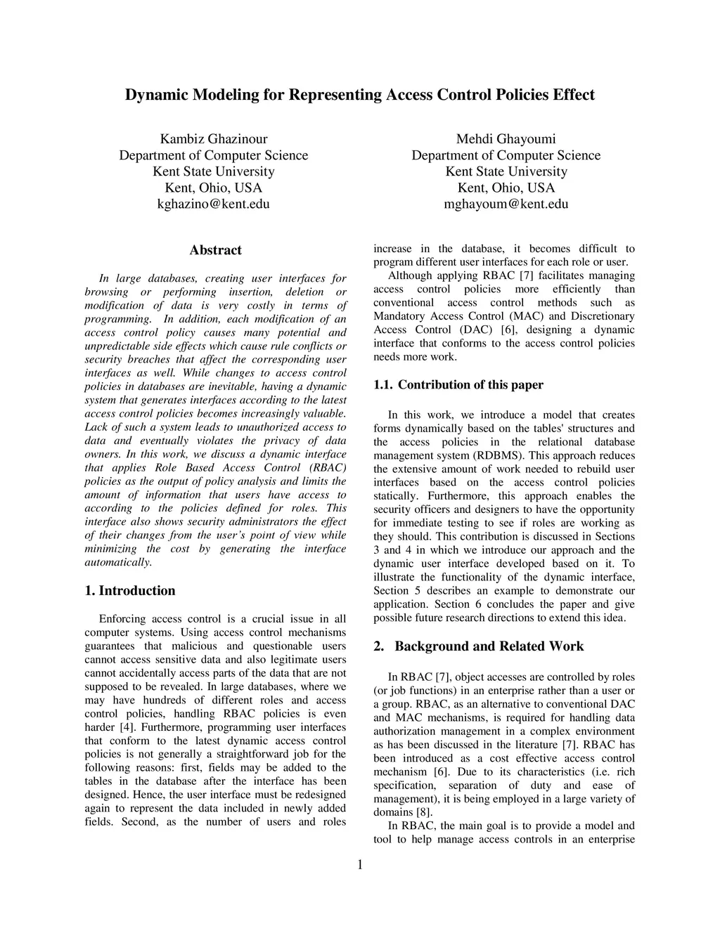 In large databases, creating user interface for browsing or performing insertion, deletion or modification of data is very costly in terms of programming. In addition, each modification of an access control policy causes many potential and unpredictable side effects which cause rule conflicts or security breaches that affect the corresponding user interfaces as well. While changes to access control policies in databases are inevitable, having a dynamic system that generates interface according to the latest access control policies become increasingly valuable. Lack of such a system leads to unauthorized access to data and eventually violates the privacy of data owners. In this work, we discuss a dynamic interface that applies Role Based Access Control (RBAC) policies as the output of policy analysis and limits the amount of information that users have access according to the policies defined for roles. This interface also shows security administrators the effect of their changes from the user's point of view while minimizing the cost by generating the interface automatically.