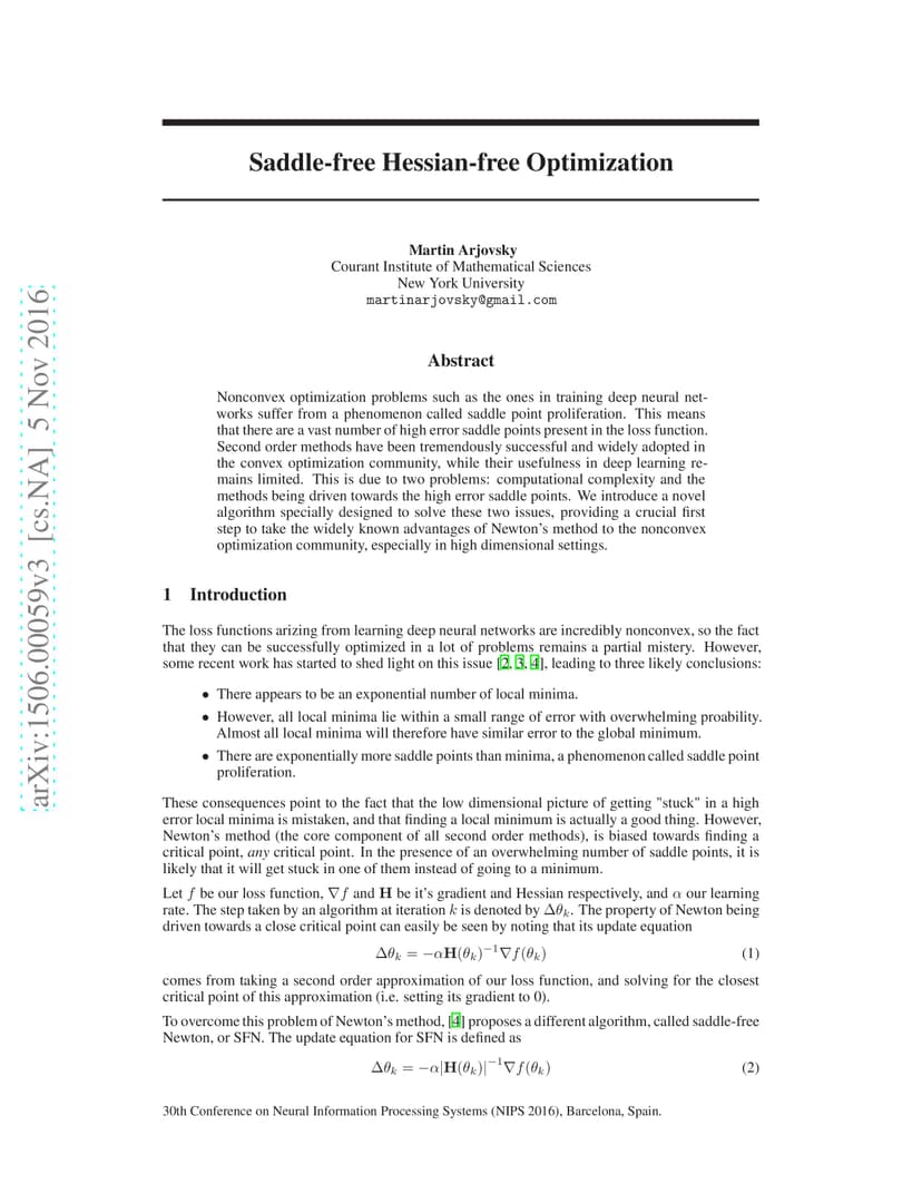 Nonconvex optimization problems such as the ones in training deep neural networks suffer from a phenomenon called saddle point proliferation. This means that there are a vast number of high error saddle points present in the loss function. Second order methods have been tremendously successful and widely adopted in the convex optimization community, while their usefulness in deep learning remains limited. This is due to two problems: computational complexity and the methods being driven towards the high error saddle points. We introduce a novel algorithm specially designed to solve these two issues, providing a crucial first step to take the widely known advantages of Newton's method to the nonconvex optimization community, especially in high dimensional settings.