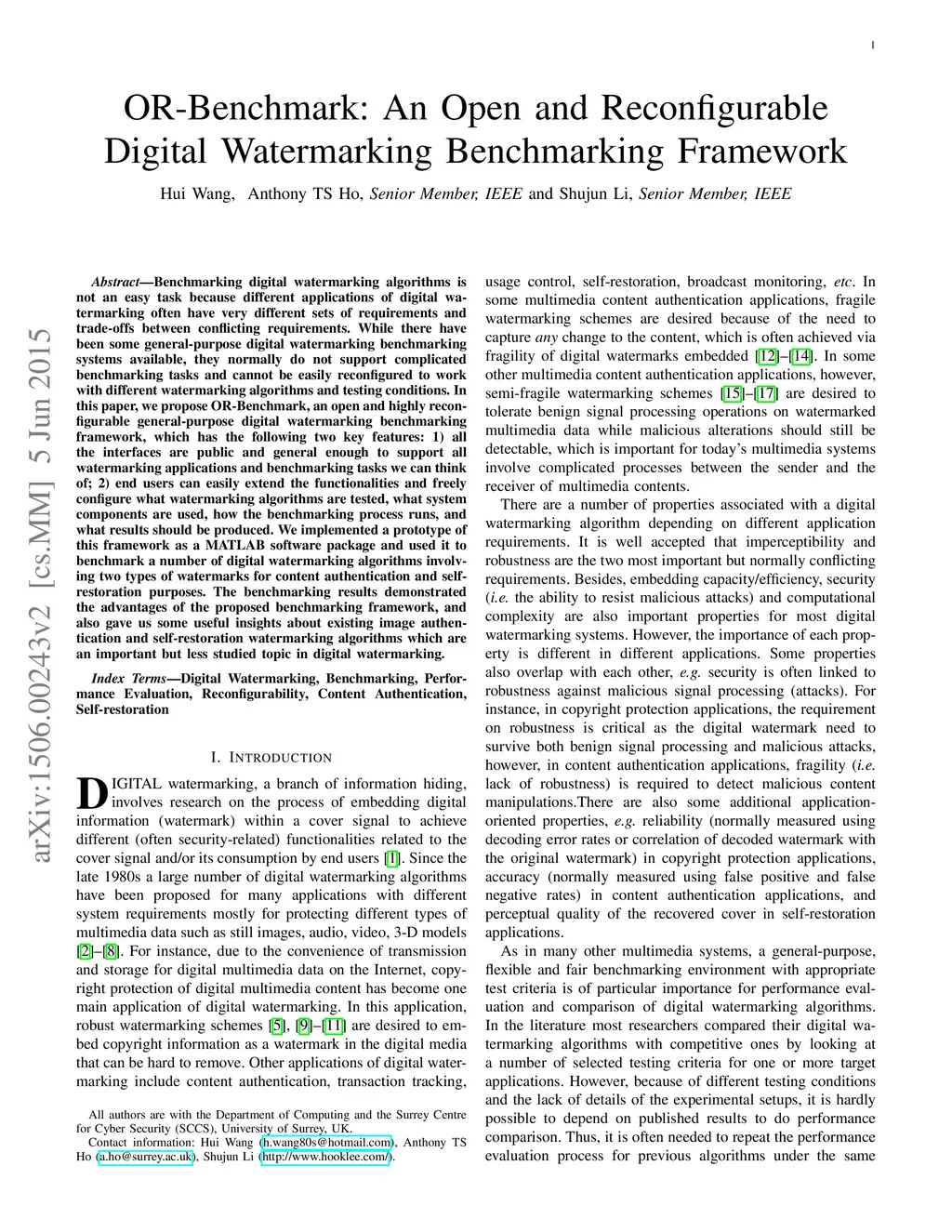 OR-Benchmark: An Open and Reconfigurable Digital Watermarking