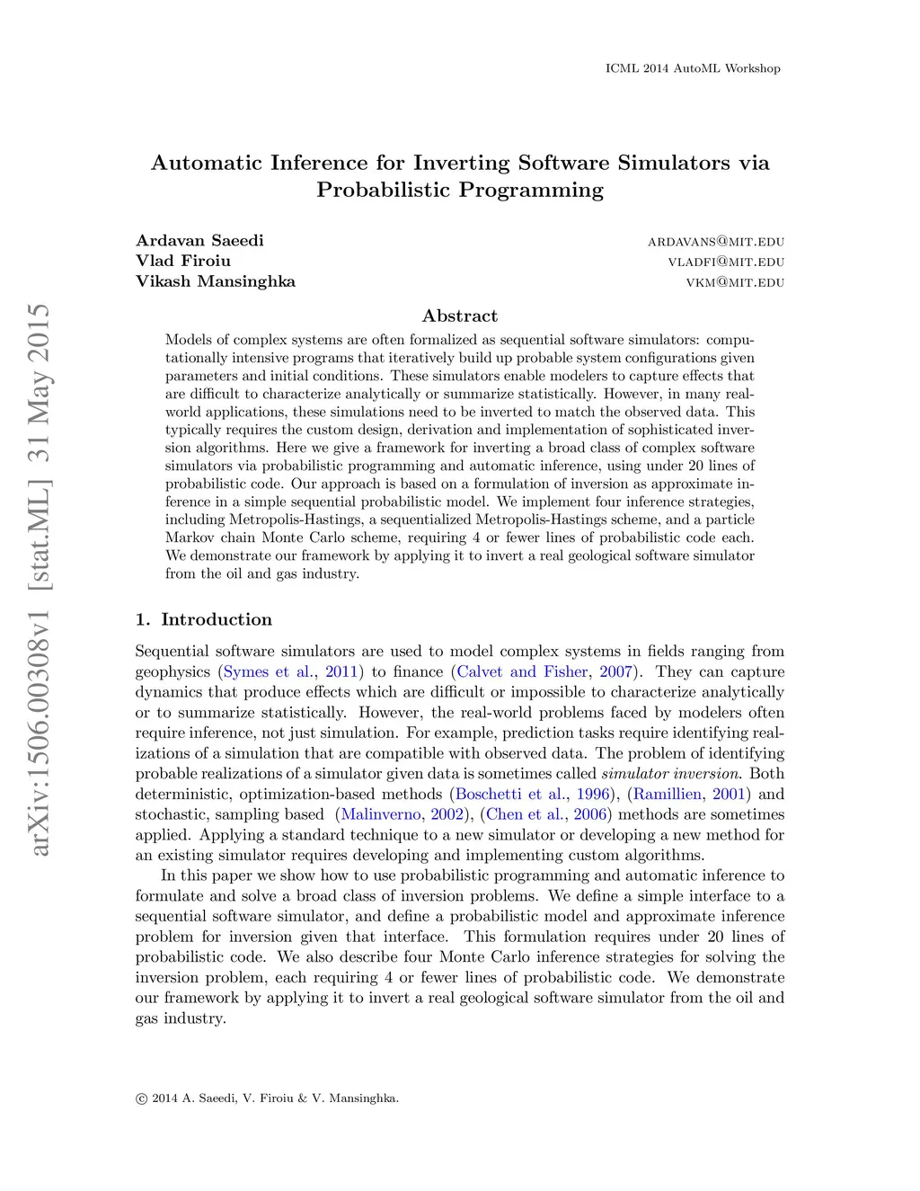 Automatic Inference for Inverting Software Simulators via Probabilistic