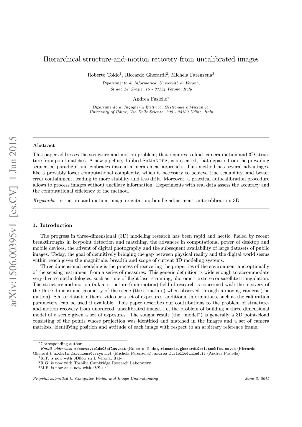 Hierarchical structure-and-motion recovery from uncalibrated images