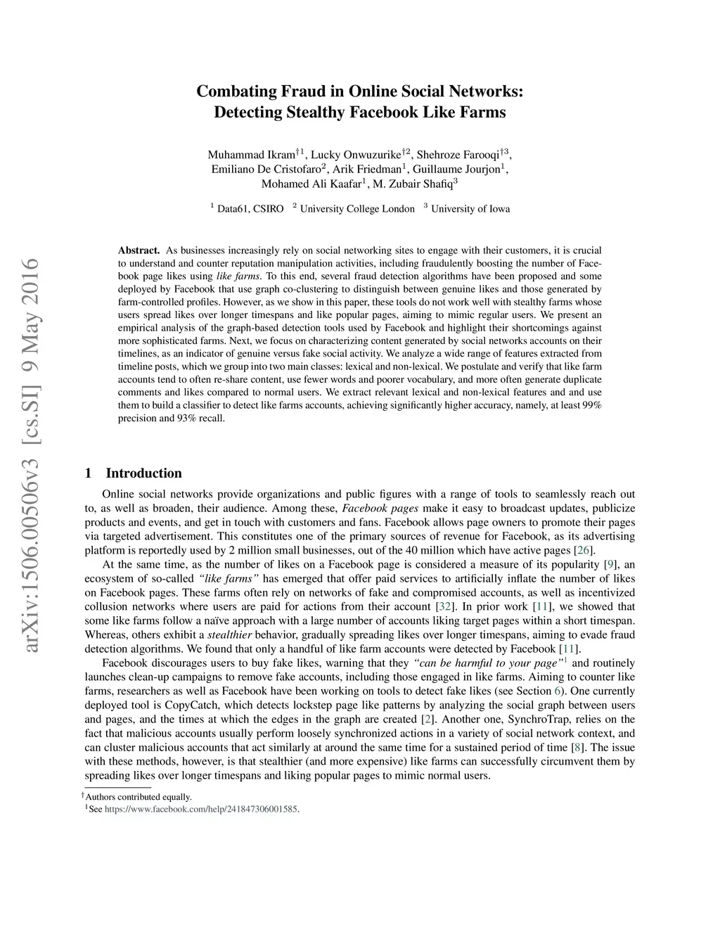 Combating Fraud in Online Social Networks: Detecting Stealthy Facebook