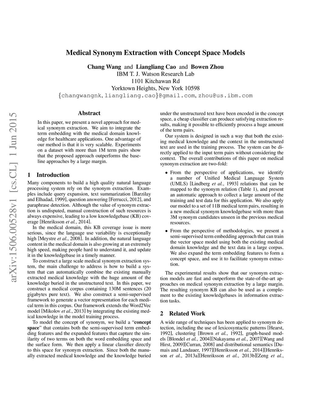 In this paper, we present a novel approach for medical synonym extraction. We aim to integrate the term embedding with the medical domain knowledge for healthcare applications. One advantage of our method is that it is very scalable. Experiments on a dataset with more than 1M term pairs show that the proposed approach outperforms the baseline approaches by a large margin.