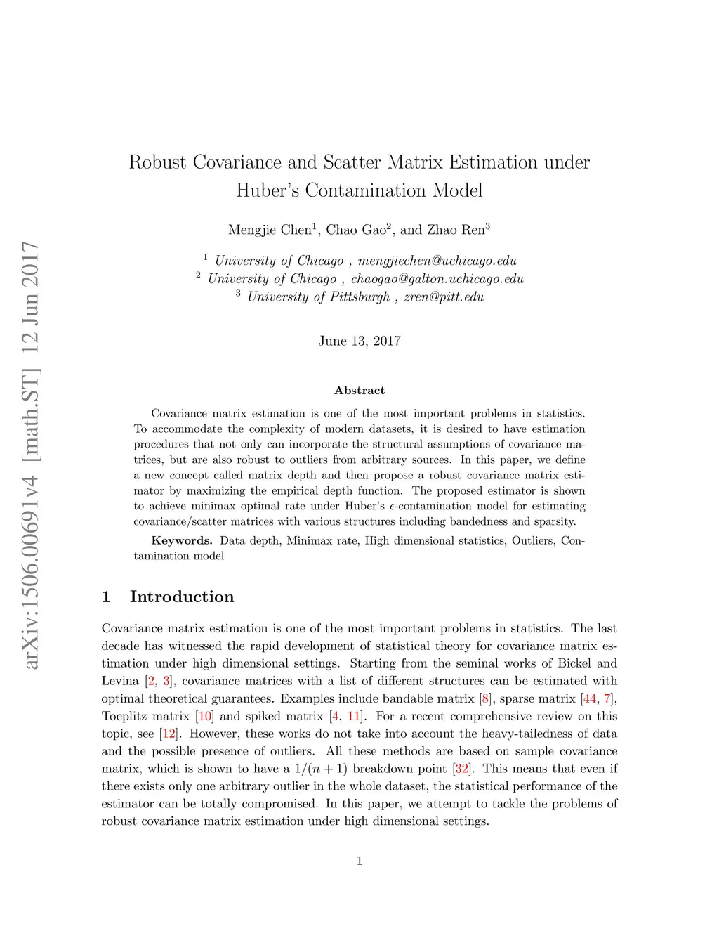 Robust Covariance and Scatter Matrix Estimation under Huber's