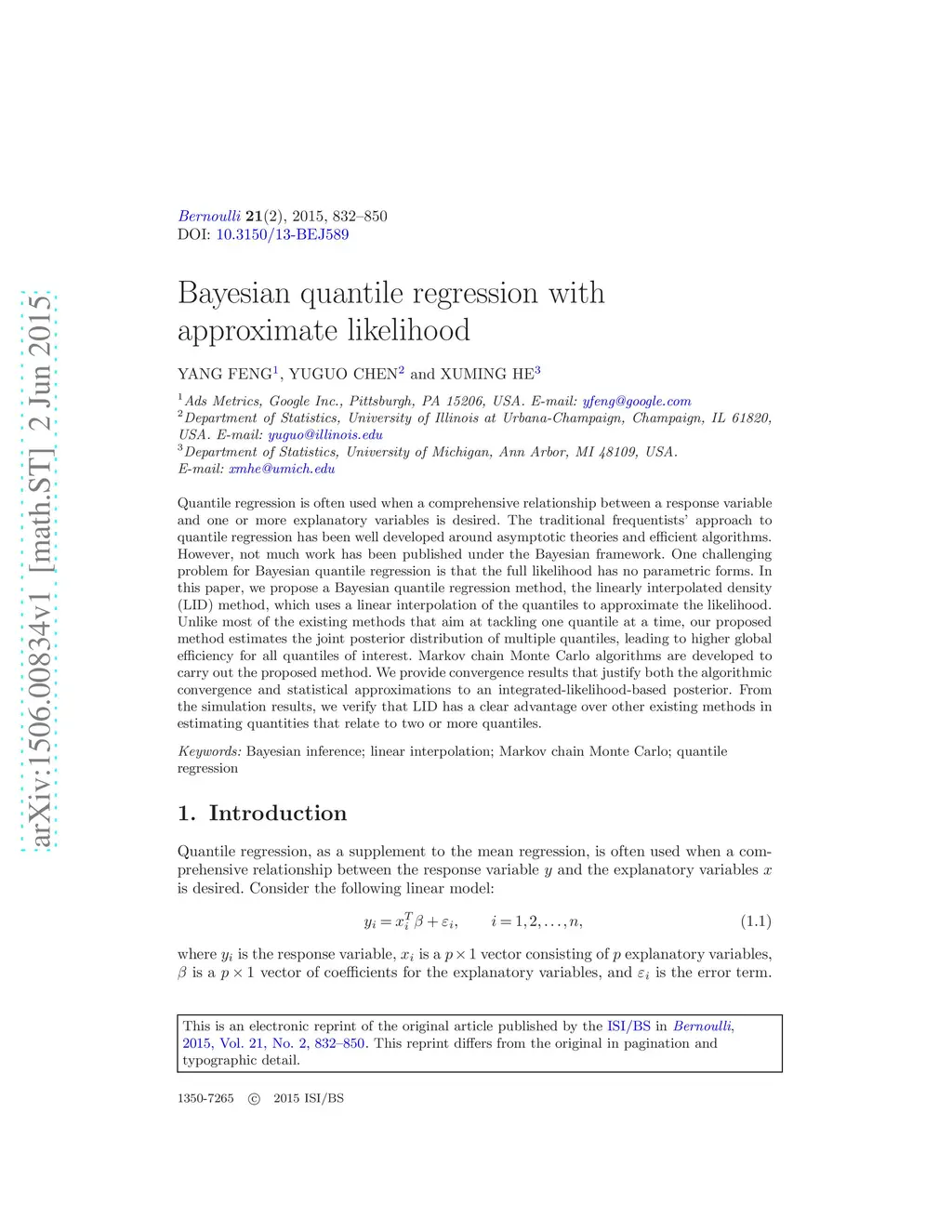 Quantile regression is often used when a comprehensive relationship between a response variable and one or more explanatory variables is desired. The traditional frequentists' approach to quantile regression has been well developed around asymptotic theories and efficient algorithms. However, not much work has been published under the Bayesian framework. One challenging problem for Bayesian quantile regression is that the full likelihood has no parametric forms. In this paper, we propose a Bayesian quantile regression method, the linearly interpolated density (LID) method, which uses a linear interpolation of the quantiles to approximate the likelihood. Unlike most of the existing methods that aim at tackling one quantile at a time, our proposed method estimates the joint posterior distribution of multiple quantiles, leading to higher global efficiency for all quantiles of interest. Markov chain Monte Carlo algorithms are developed to carry out the proposed method. We provide convergence results that justify both the algorithmic convergence and statistical approximations to an integrated-likelihood-based posterior. From the simulation results, we verify that LID has a clear advantage over other existing methods in estimating quantities that relate to two or more quantiles.