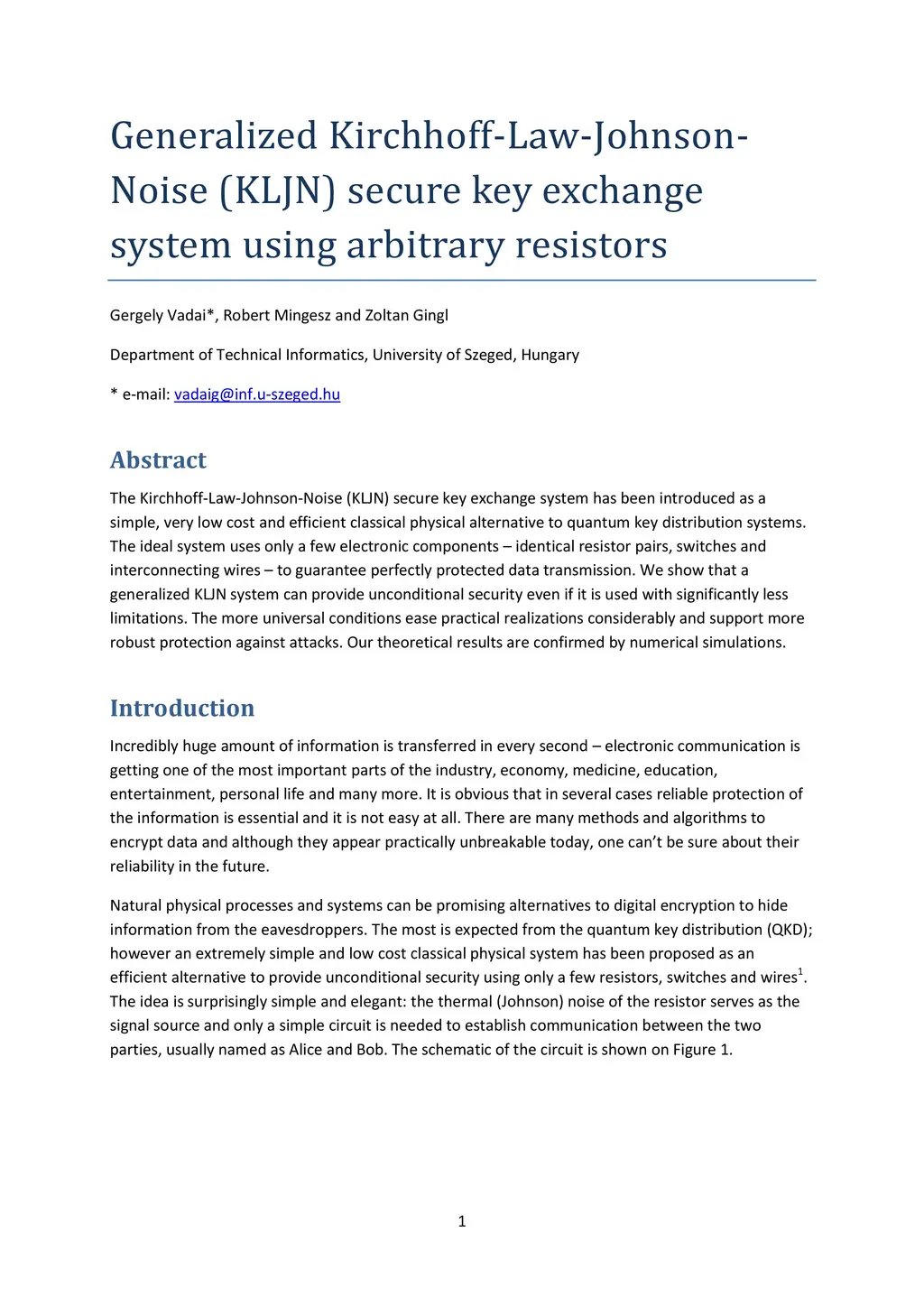Generalized Kirchhoff-Law-Johnson-Noise (KLJN) secure key exchange