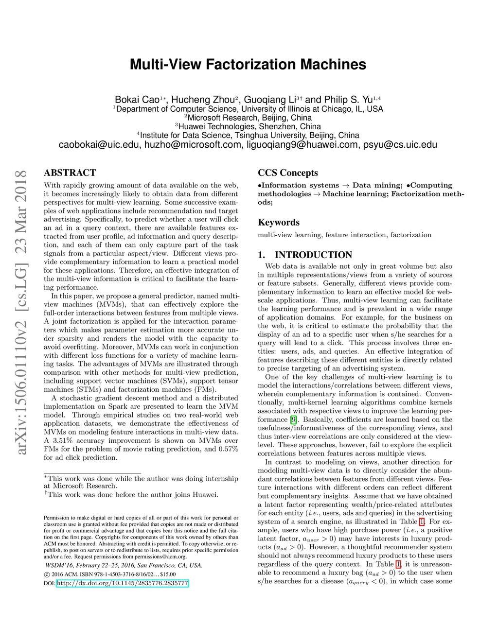 For a learning task, data can usually be collected from different sources or be represented from multiple views. For example, laboratory results from different medical examinations are available for disease diagnosis, and each of them can only reflect the health state of a person from a particular aspect/view. Therefore, different views provide complementary information for learning tasks. An effective integration of the multi-view information is expected to facilitate the learning performance. In this paper, we propose a general predictor, named multi-view machines (MVMs), that can effectively include all the possible interactions between features from multiple views. A joint factorization is embedded for the full-order interaction parameters which allows parameter estimation under sparsity. Moreover, MVMs can work in conjunction with different loss functions for a variety of machine learning tasks. A stochastic gradient descent method is presented to learn the MVM model. We further illustrate the advantages of MVMs through comparison with other methods for multi-view classification, including support vector machines (SVMs), support tensor machines (STMs) and factorization machines (FMs).