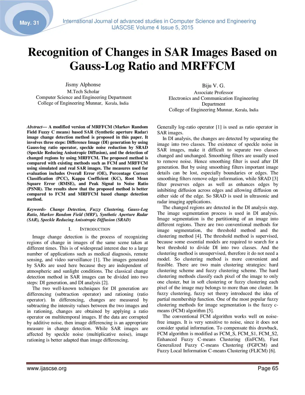 Recognition of Changes in SAR Images Based on Gauss-Log Ratio and MRFFCM