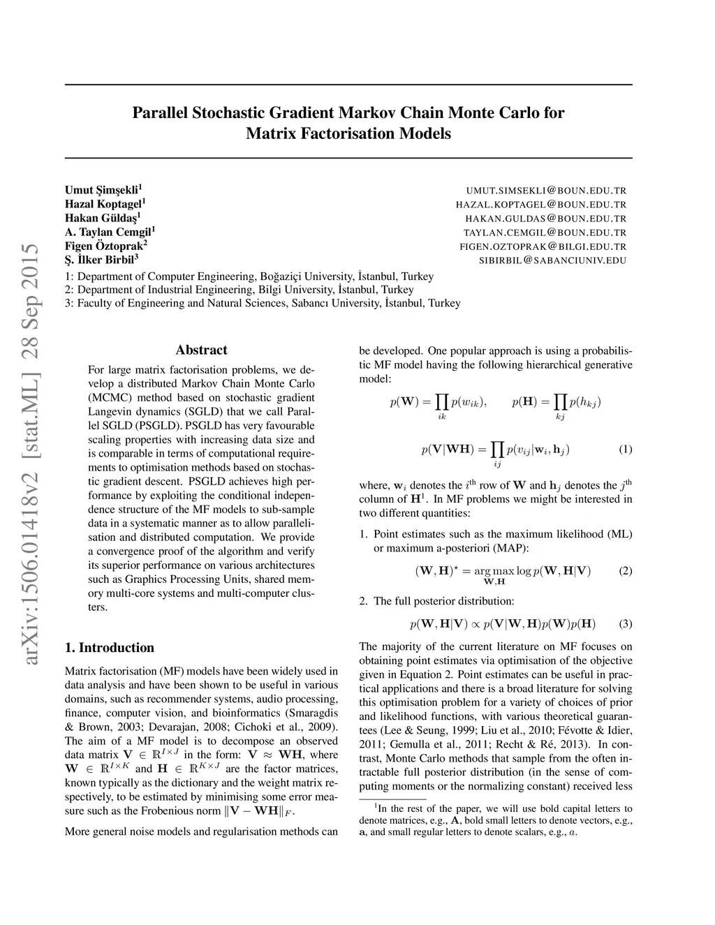 Parallel Stochastic Gradient Markov Chain Monte Carlo for Matrix