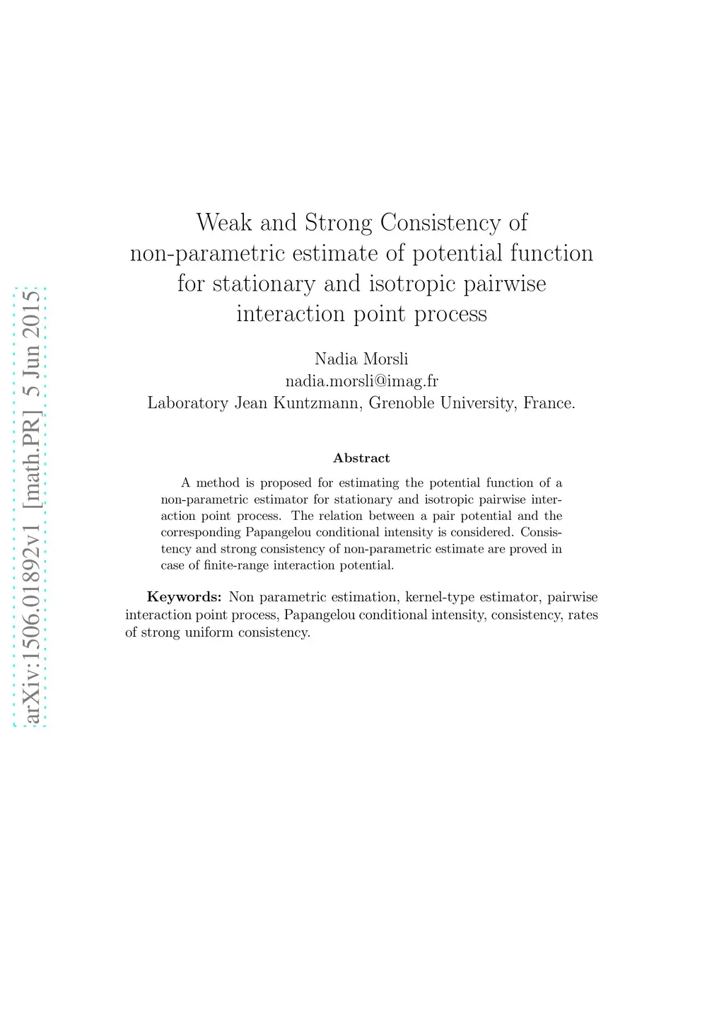 Weak and Strong Consistency of non-parametric estimate of potential