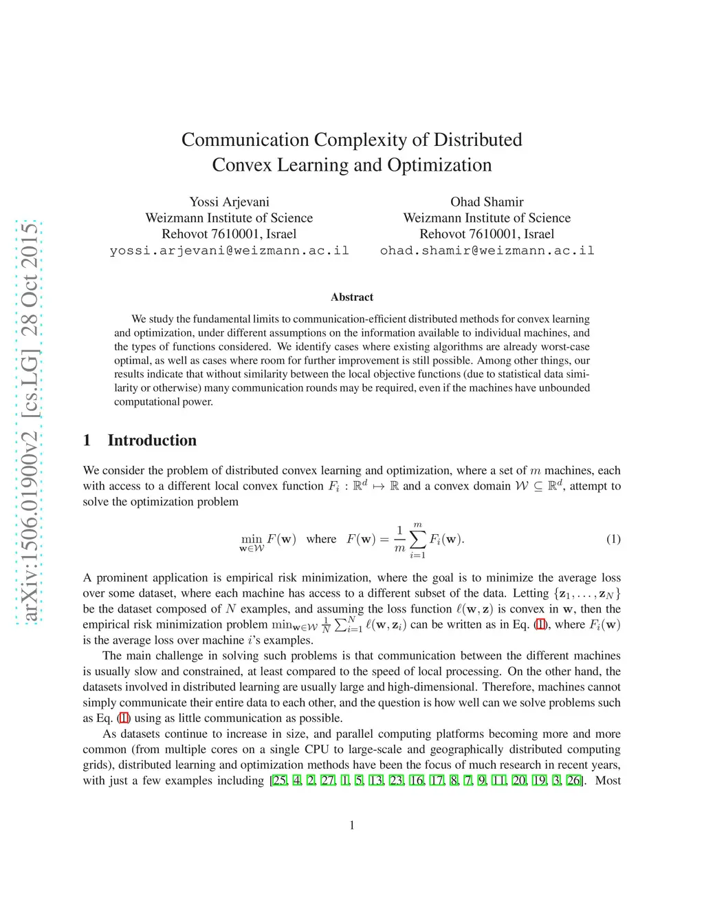 We study the fundamental limits to communication-efficient distributed methods for convex learning and optimization, under different assumptions on the information available to individual machines, and the types of functions considered. We identify cases where existing algorithms are already worst-case optimal, as well as cases where room for further improvement is still possible. Among other things, our results indicate that without similarity between the local objective functions (due to statistical data similarity or otherwise) many communication rounds may be required, even if the machines have unbounded computational power.