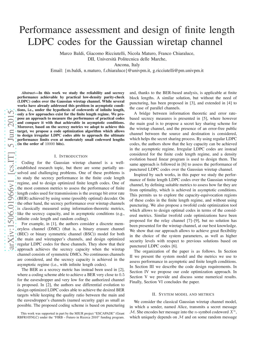 In this work we study the reliability and secrecy performance achievable by practical LDPC codes over the Gaussian wiretap channel. While several works have already addressed this problem in asymptotic conditions, i.e., under the hypothesis of codewords of infinite length, only a few approaches exist for the finite length regime. We propose an approach to measure the performance of practical codes and compare it with that achievable in asymptotic conditions. Moreover, based on the secrecy metrics we adopt to achieve this target, we propose a code optimization algorithm which allows to design irregular LDPC codes able to approach the ultimate performance limits even at moderately small codeword lengths (in the order of 10000 bits).