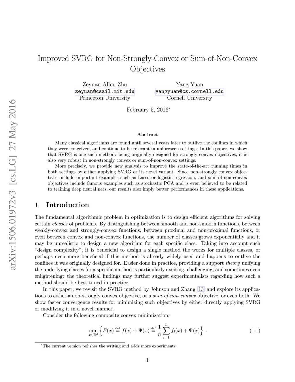 Improved SVRG for Non-Strongly-Convex or Sum-of-Non-Convex Objectives