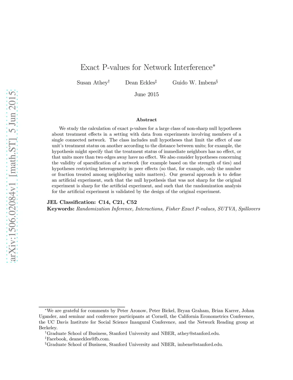 We study the calculation of exact p-values for a large class of non-sharp null hypotheses about treatment effects in a setting with data from experiments involving members of a single connected network. The class includes null hypotheses that limit the effect of one unit's treatment status on another according to the distance between units; for example, the hypothesis might specify that the treatment status of immediate neighbors has no effect, or that units more than two edges away have no effect. We also consider hypotheses concerning the validity of sparsification of a network (for example based on the strength of ties) and hypotheses restricting heterogeneity in peer effects (so that, for example, only the number or fraction treated among neighboring units matters). Our general approach is to define an artificial experiment, such that the null hypothesis that was not sharp for the original experiment is sharp for the artificial experiment, and such that the randomization analysis for the artificial experiment is validated by the design of the original experiment.