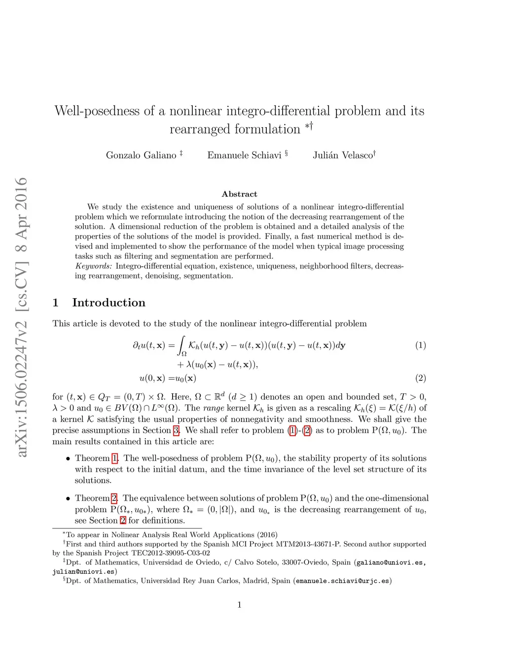 We study the existence and uniqueness of solutions of a nonlinear integro-differential problem which we reformulate introducing the notion of the decreasing rearrangement of the solution. A dimensional reduction of the problem is obtained and a detailed analysis of the properties of the solutions of the model is provided. Finally, a fast numerical method is devised and implemented to show the performance of the model when typical image processing tasks such as filtering and segmentation are performed.