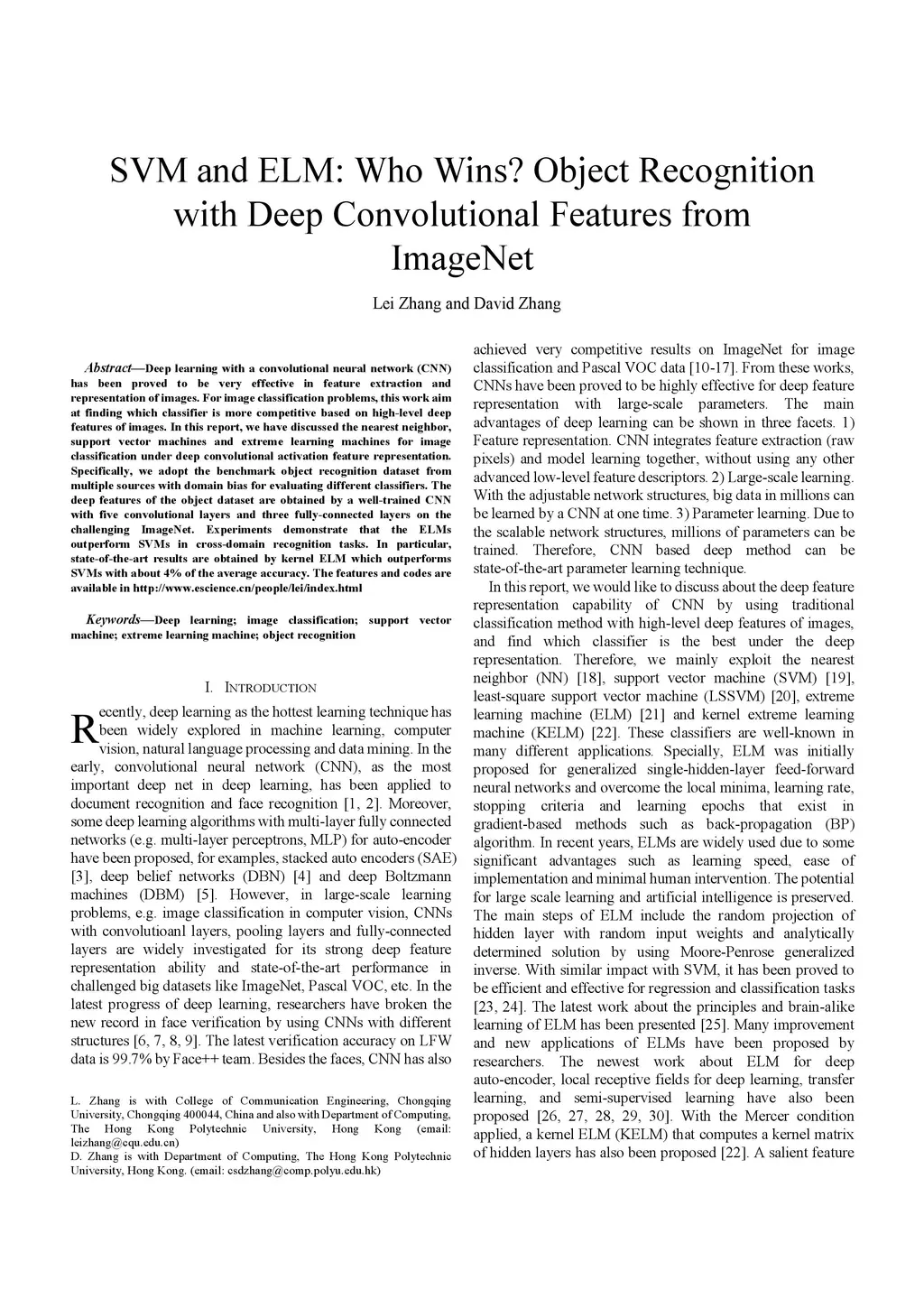 SVM and ELM: Who Wins? Object Recognition with Deep Convolutional
