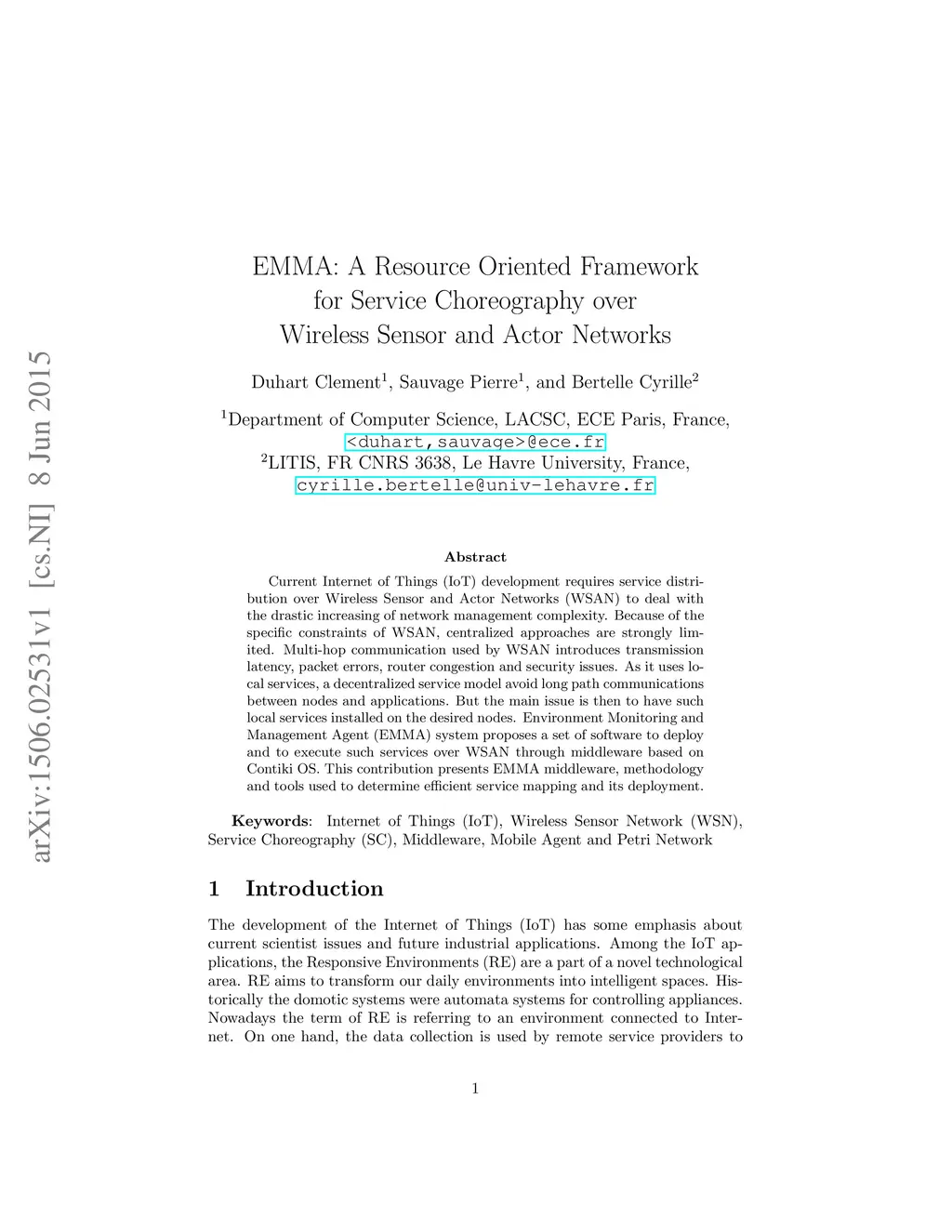 Current Internet of Things (IoT) development requires service distribution over Wireless Sensor and Actor Networks (WSAN) to deal with the drastic increasing of network management complexity. Because of the specific constraints of WSAN, centralized approaches are strongly limited. Multi-hop communication used by WSAN introduces transmission latency, packet errors, router congestion and security issues. As it uses local services, a decentralized service model avoid long path communications between nodes and applications. But the main issue is then to have such local services installed on the desired nodes. Environment Monitoring and Management Agent (EMMA) system proposes a set of software to deploy and to execute such services over Wireless Sensor and Actor Networks (WSAN) through a middleware based on Resource Oriented Architecture (ROA). Its Internet integration and the local management of data heterogeneity are facilitated through the use of current standard protocols such as IPv6 LoW Power Wireless Area Networks (6LoWPAN) and Constrained Application Protocol (CoAP). This contribution presents EMMA middleware, methodology and tools used to determine efficient service mapping and its deployment.