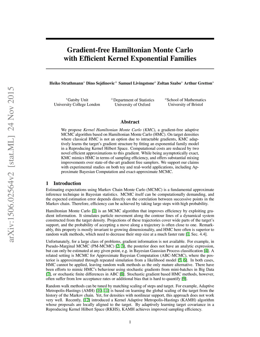 Gradient-free Hamiltonian Monte Carlo with Efficient Kernel Exponential