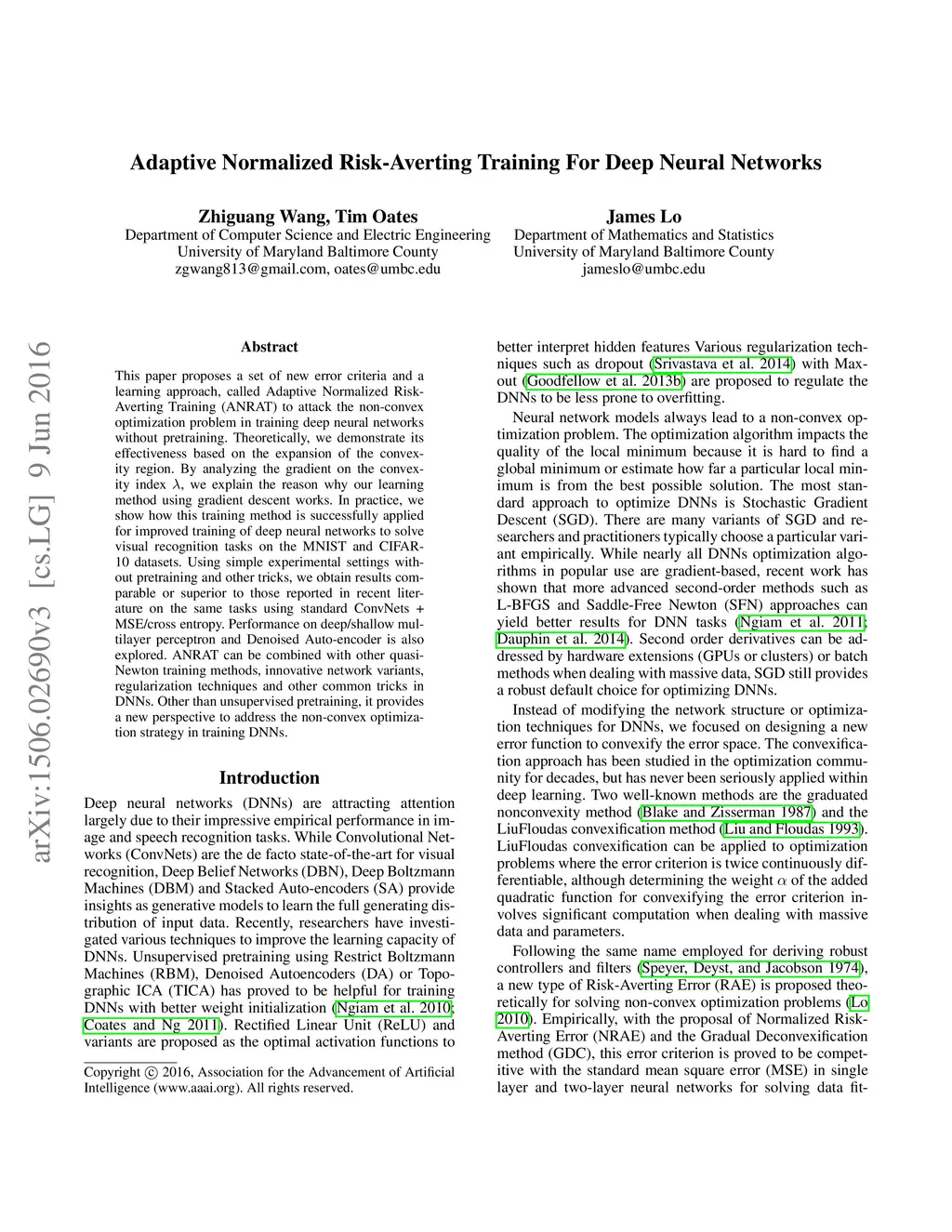 Adaptive Normalized Risk-Averting Training For Deep Neural Networks