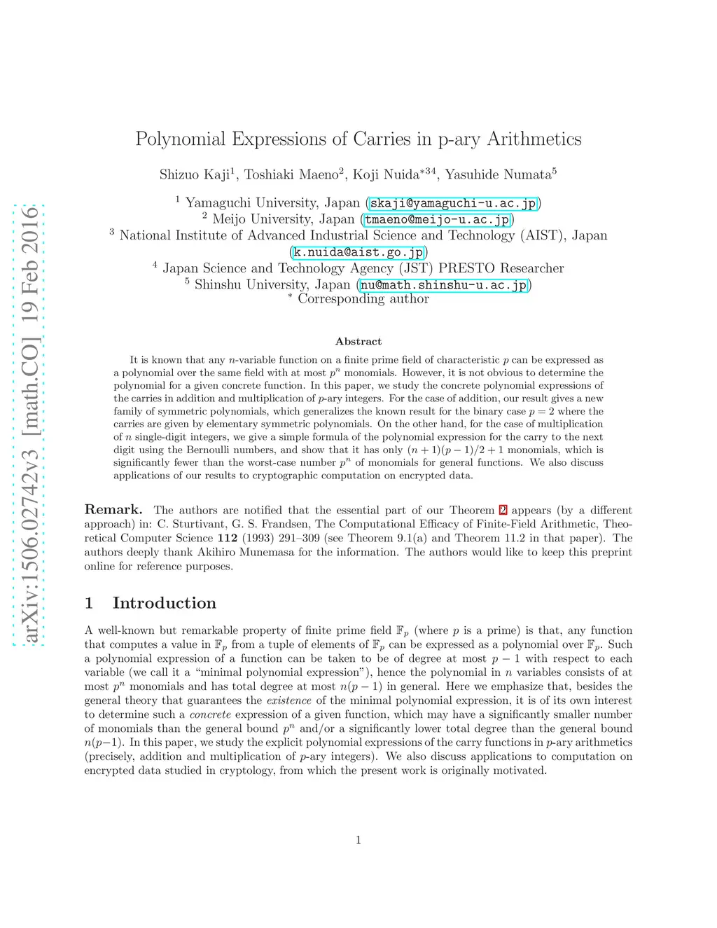 Polynomial Expressions of Carries in p-ary Arithmetics