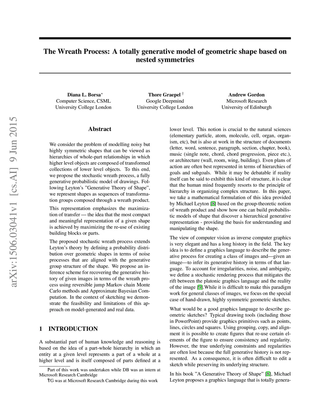 We consider the problem of modelling noisy but highly symmetric shapes that can be viewed as hierarchies of whole-part relationships in which higher level objects are composed of transformed collections of lower level objects. To this end, we propose the stochastic wreath process, a fully generative probabilistic model of drawings. Following Leyton's "Generative Theory of Shape", we represent shapes as sequences of transformation groups composed through a wreath product. This representation emphasizes the maximization of transfer --- the idea that the most compact and meaningful representation of a given shape is achieved by maximizing the re-use of existing building blocks or parts. The proposed stochastic wreath process extends Leyton's theory by defining a probability distribution over geometric shapes in terms of noise processes that are aligned with the generative group structure of the shape. We propose an inference scheme for recovering the generative history of given images in terms of the wreath process using reversible jump Markov chain Monte Carlo methods and Approximate Bayesian Computation. In the context of sketching we demonstrate the feasibility and limitations of this approach on model-generated and real data.