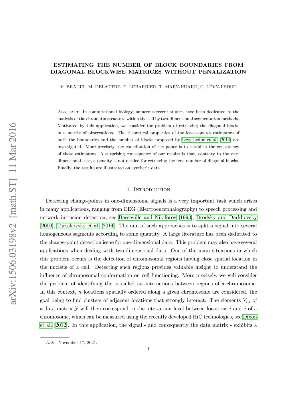 In computational biology, numerous recent studies have been dedicated to the analysis of the chromatin structure within the cell by two-dimensional segmentation methods. Motivated by this application, we consider the problem of retrieving the diagonal blocks in a matrix of observations. The theoretical properties of the least-squares estimators of both the boundaries and the number of blocks proposed by L\évy-Leduc et al. [2014] are investigated. More precisely, the contribution of the paper is to establish the consistency of these estimators. A surprising consequence of our results is that, contrary to the onedimensional case, a penalty is not needed for retrieving the true number of diagonal blocks. Finally, the results are illustrated on synthetic data.