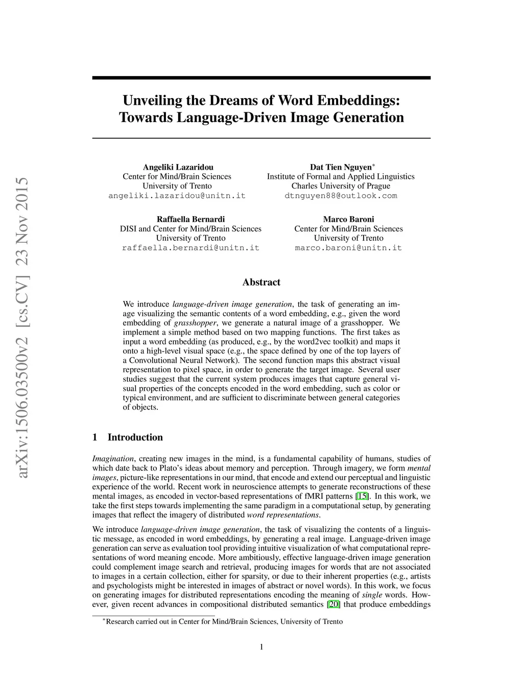 Unveiling the Dreams of Word Embeddings: Towards Language-Driven Image
