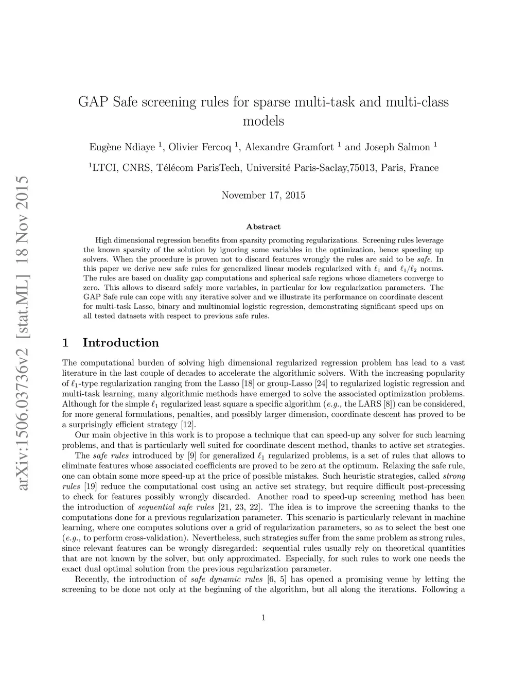 GAP Safe screening rules for sparse multi-task and multi-class models