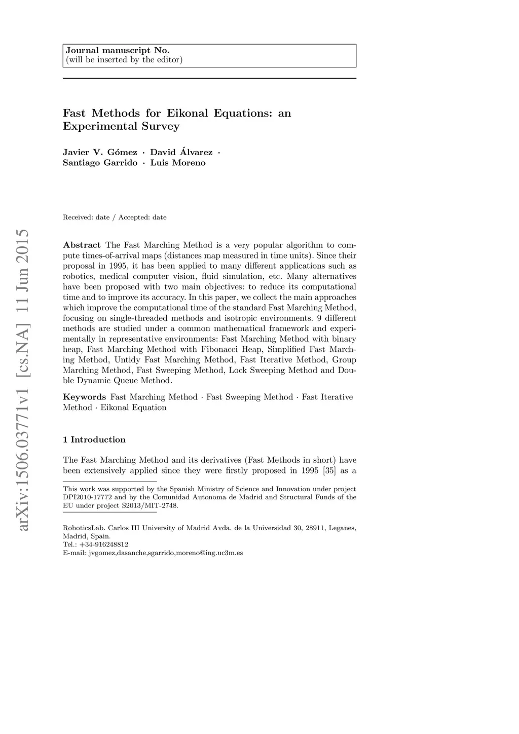 The Fast Marching Method is a very popular algorithm to compute times-of-arrival maps (distances map measured in time units). Since their proposal in 1995, it has been applied to many different applications such as robotics, medical computer vision, fluid simulation, etc. Many alternatives have been proposed with two main objectives: to reduce its computational time and to improve its accuracy. In this paper, we collect the main approaches which improve the computational time of the standard Fast Marching Method, focusing on single-threaded methods and isotropic environments. 9 different methods are studied under a common mathematical framework and experimentally in representative environments: Fast Marching Method with binary heap, Fast Marching Method with Fibonacci Heap, Simplified Fast Marching Method, Untidy Fast Marching Method, Fast Iterative Method, Group Marching Method, Fast Sweeping Method, Lock Sweeping Method and Double Dynamic Queue Method.