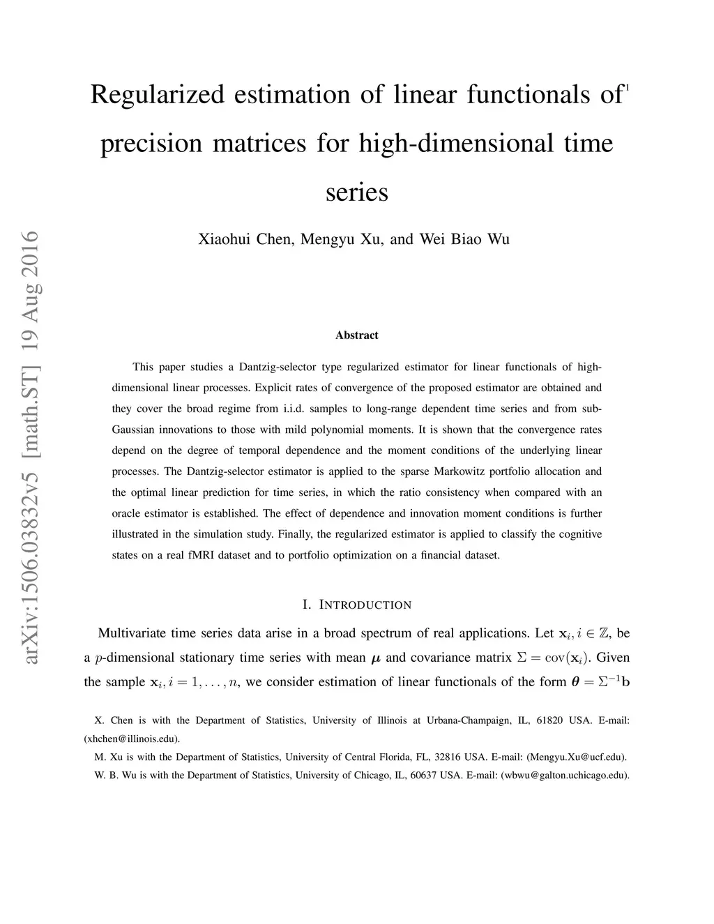 We consider the structured covariance matrix estimation and related problems for high-dimensional linear processes. A comprehensive characterization is given for the spectral and the Frobenius norm rates of convergence for the thresholded covariance matrix estimates. Asymptotic rate of the graphical Lasso estimate of precision matrices is derived for Gaussian processes. In addition, we propose a Dantzig-type estimate of the linear statistic of the form , where is a covariance matrix and is a vector. Our framework covers the broad regime from i.i.d. samples to long-range dependent time series and from sub-Gaussian innovations to those with mild polynomial moments. The rate of convergence depends on the degree of temporal dependence and the moment conditions in a subtle way. A data-driven method is proposed for selecting the tuning parameters. Our procedure is applied to a real fMRI dataset.