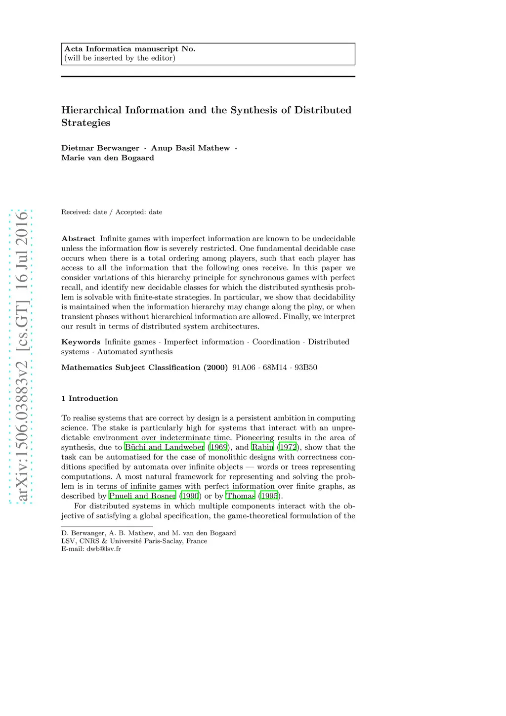 Hierarchical Information and the Synthesis of Distributed Strategies