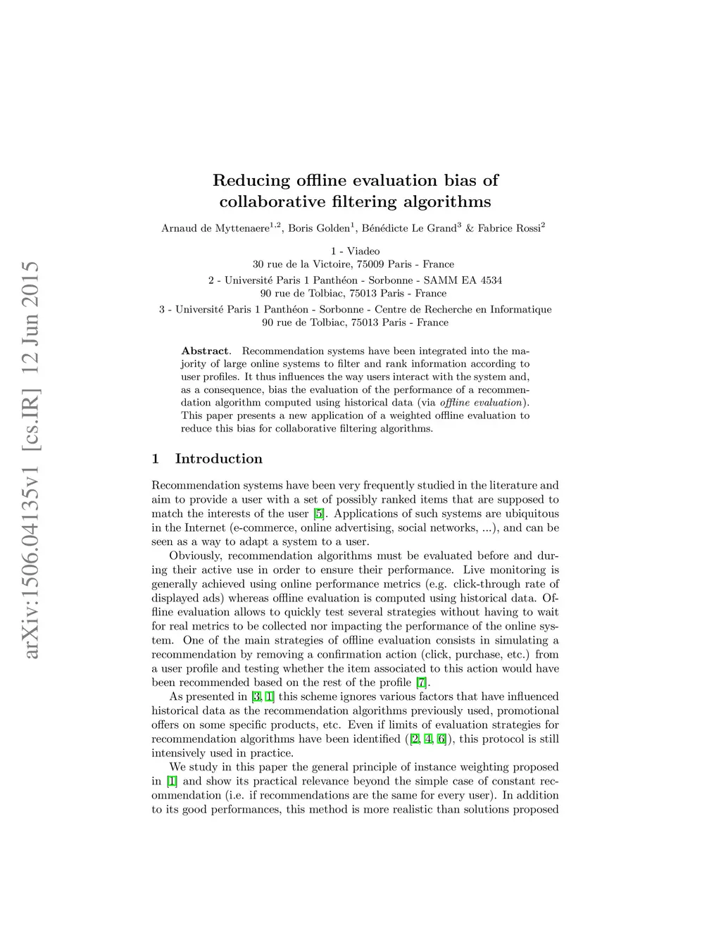 Reducing offline evaluation bias of collaborative filtering algorithms
