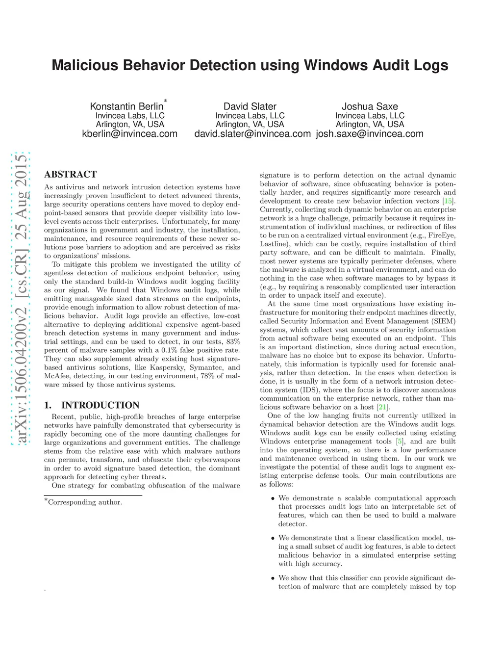 Malicious Behavior Detection using Windows Audit Logs