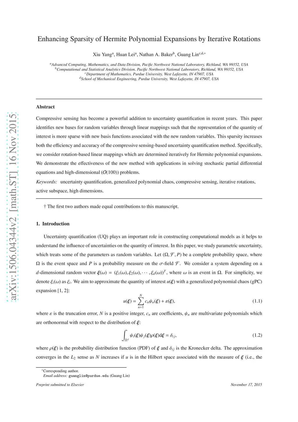 Compressive sensing has become a powerful addition to uncertainty quantification in recent years. This paper identifies new bases for random variables through linear mappings such that the representation of the quantity of interest is more sparse with new basis functions associated with the new random variables. This sparsity increases both the efficiency and accuracy of the compressive sensing-based uncertainty quantification method. Specifically, we consider rotation-based linear mappings which are determined iteratively for Hermite polynomial expansions. We demonstrate the effectiveness of the new method with applications in solving stochastic partial differential equations and high-dimensional problems.