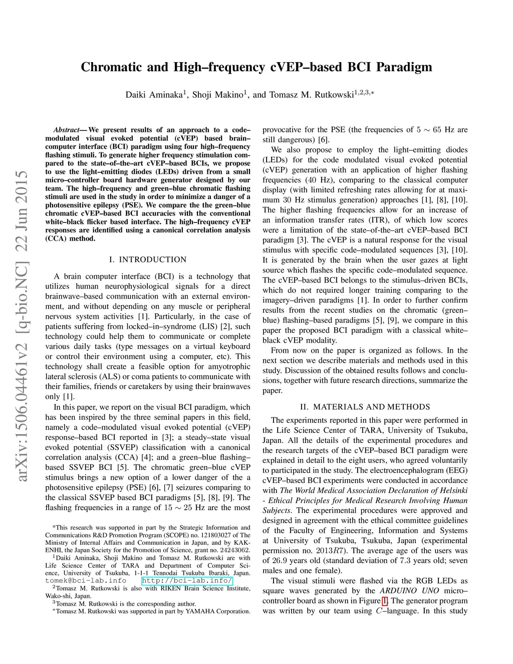 Chromatic and High-frequency cVEP-based BCI Paradigm