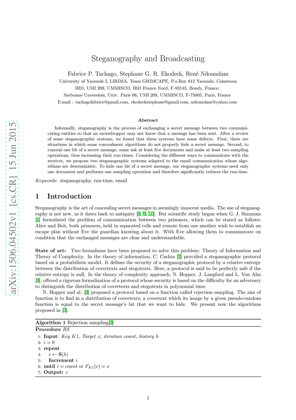 Informally, steganography is the process of exchanging a secret message between two communicating entities so that an eavesdropper may not know that a message has been sent. After a review of some steganographic systems, we found that these systems have some defects. First, there are situations in which some concealment algorithms do not properly hide a secret message. Second, to conceal one bit of a secret message, some ask at least five documents and make at least two sampling operations, thus increasing their run-times. Considering the different ways to communicate with the receiver, we propose two steganographic systems adapted to the email communication whose algorithms are deterministic. To hide one bit of a secret message, our steganographic systems need only one document and performs one sampling operation and therefore significantly reduces the run-time.