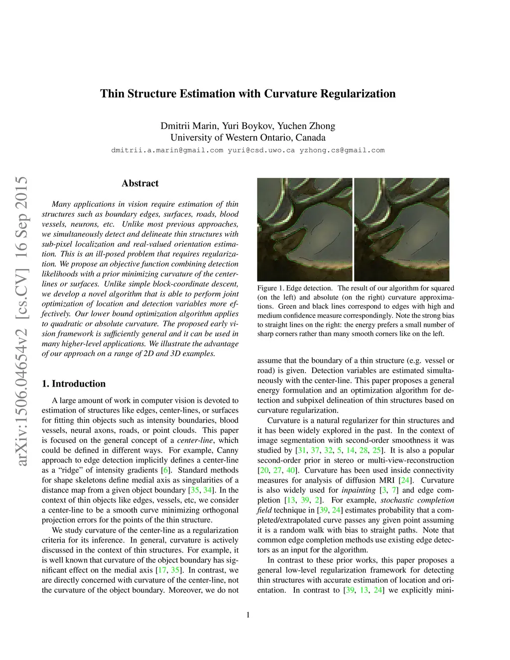 Thin Structure Estimation with Curvature Regularization