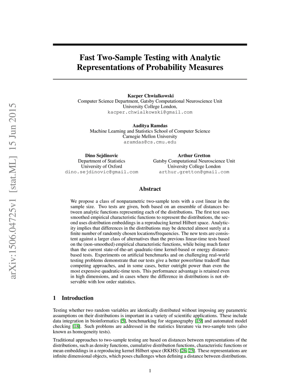 Fast Two-Sample Testing with Analytic Representations of Probability