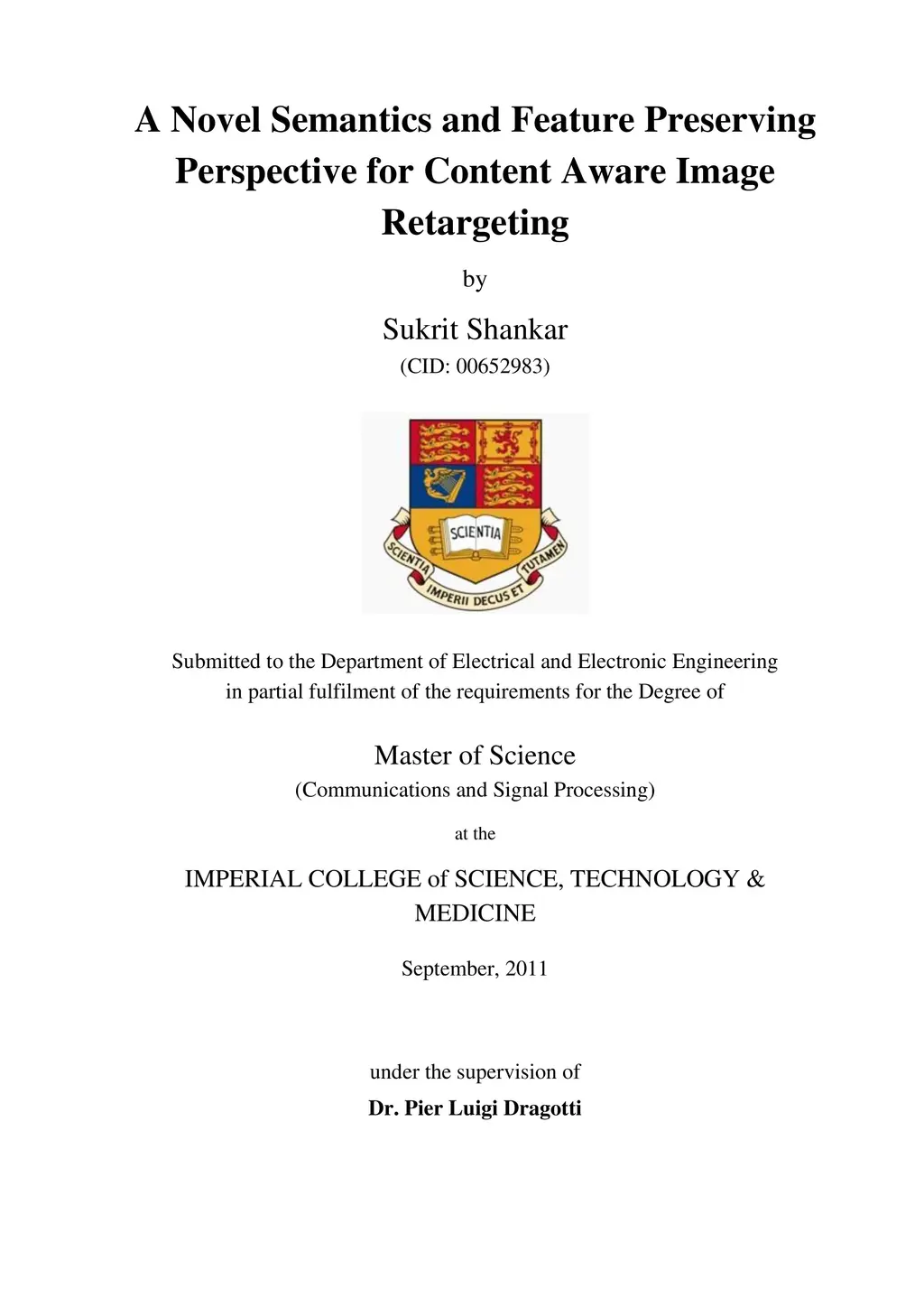 There is an increasing requirement for efficient image retargeting techniques to adapt the content to various forms of digital media. With rapid growth of mobile communications and dynamic web page layouts, one often needs to resize the media content to adapt to the desired display sizes. For various layouts of web pages and typically small sizes of handheld portable devices, the importance in the original image content gets obfuscated after resizing it with the approach of uniform scaling. Thus, there occurs a need for resizing the images in a content aware manner which can automatically discard irrelevant information from the image and present the salient features with more magnitude. There have been proposed some image retargeting techniques keeping in mind the content awareness of the input image. However, these techniques fail to prove globally effective for various kinds of images and desired sizes. The major problem is the inefficiency of these algorithms to process these images with minimal visual distortion while also retaining the meaning conveyed from the image. In this dissertation, we present a novel perspective for content aware image retargeting, which is well implementable in real time. We introduce a novel method of analysing semantic information within the input image while also maintaining the important and visually significant features. We present the various nuances of our algorithm mathematically and logically, and show that the results prove better than the state-of-the-art techniques.