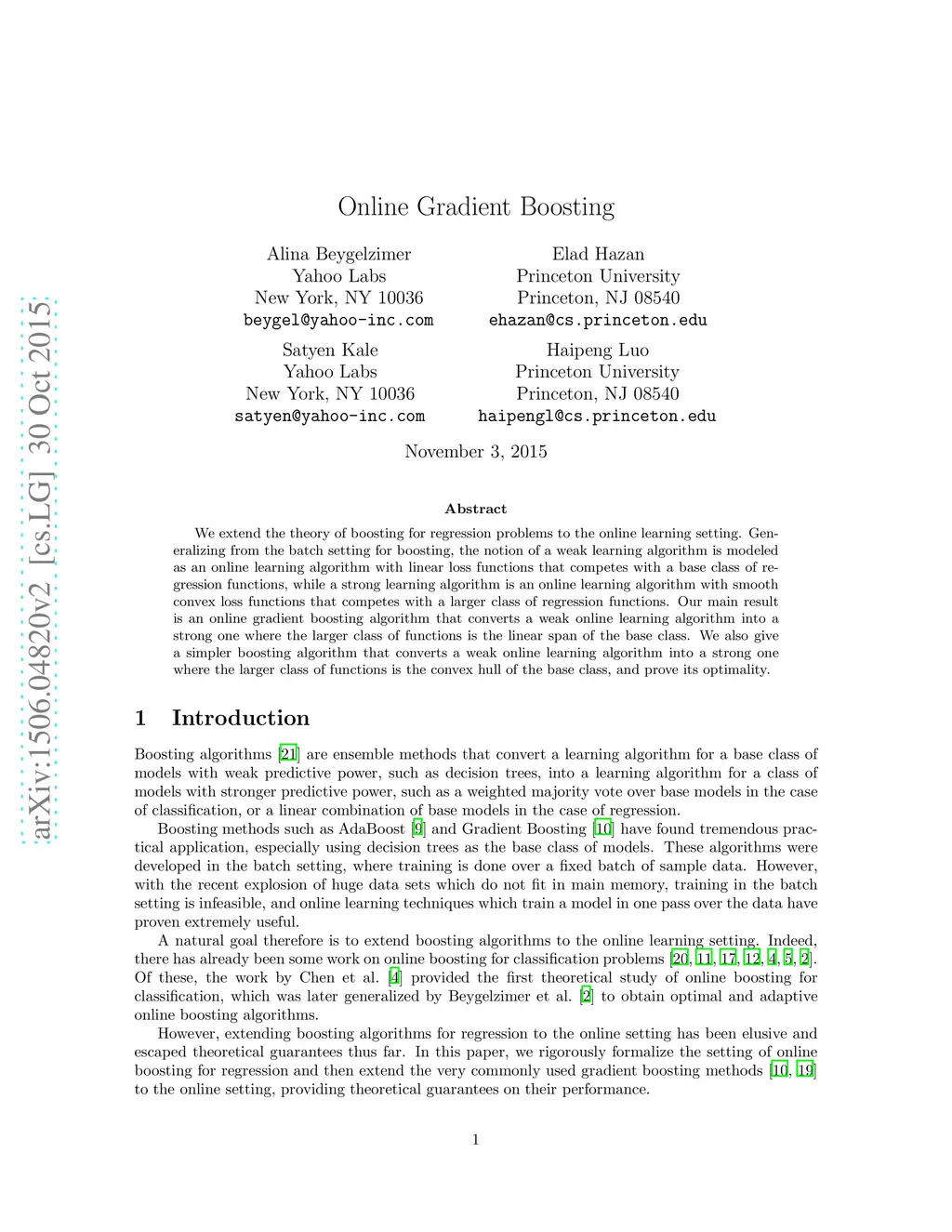 Online Gradient Boosting