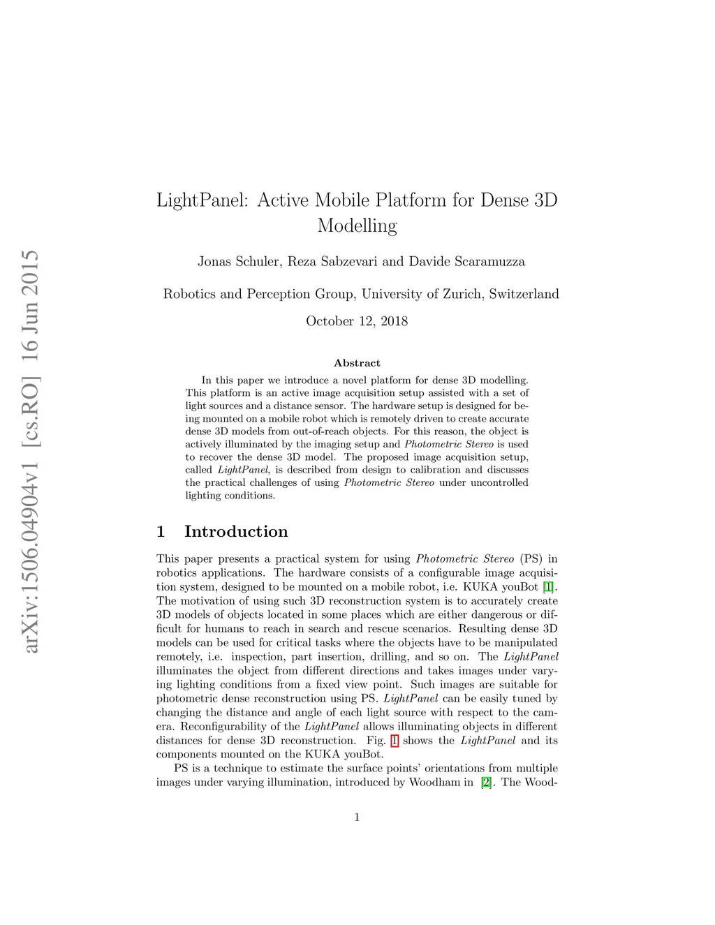 In this paper we introduce a novel platform for dense 3D modelling. This platform is an active image acquisition setup assisted with a set of light sources and a distance sensor. The hardware setup is designed for being mounted on a mobile robot which is remotely driven to create accurate dense 3D models from out-of-reach objects. For this reason, the object is actively illuminated by the imaging setup and Photometric Stereo is used to recover the dense 3D model. The proposed image acquisition setup, called LightPanel, is described from design to calibration and discusses the practical challenges of using Photometric Stereo under uncontrolled lighting conditions.