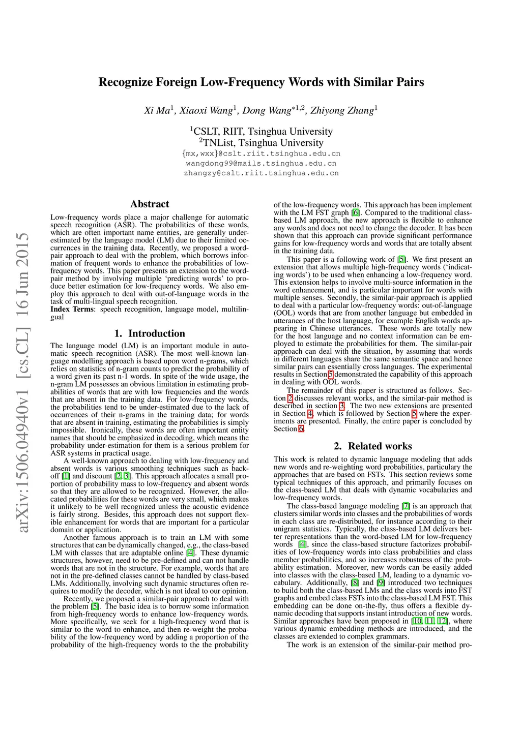 Low-frequency words place a major challenge for automatic speech recognition (ASR). The probabilities of these words, which are often important name entities, are generally under-estimated by the language model (LM) due to their limited occurrences in the training data. Recently, we proposed a word-pair approach to deal with the problem, which borrows information of frequent words to enhance the probabilities of low-frequency words. This paper presents an extension to the word-pair method by involving multiple `predicting words' to produce better estimation for low-frequency words. We also employ this approach to deal with out-of-language words in the task of multi-lingual speech recognition.