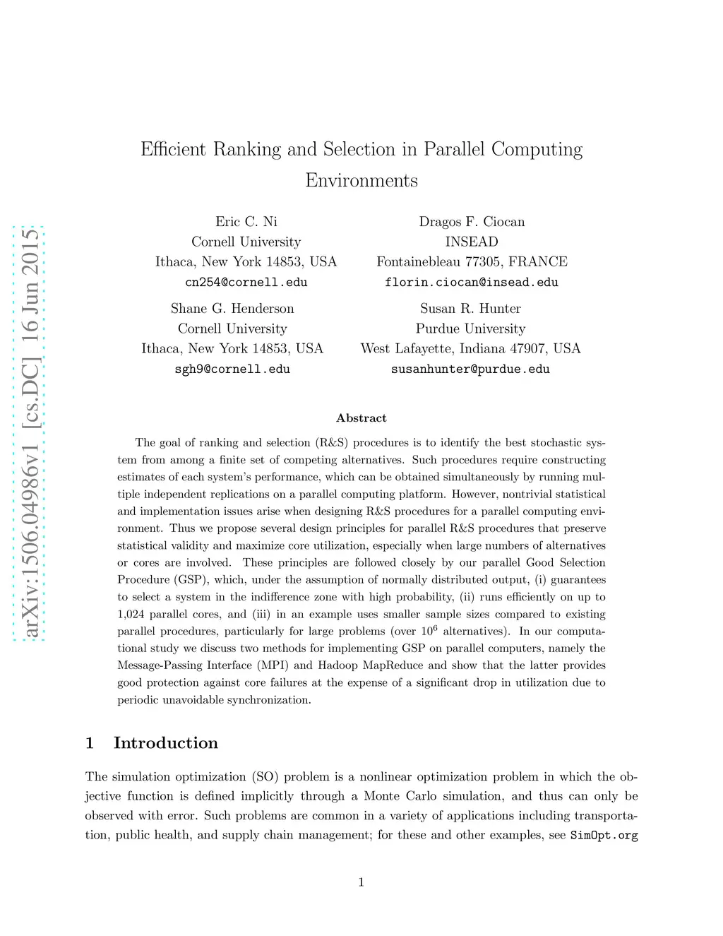 Efficient Ranking and Selection in Parallel Computing Environments