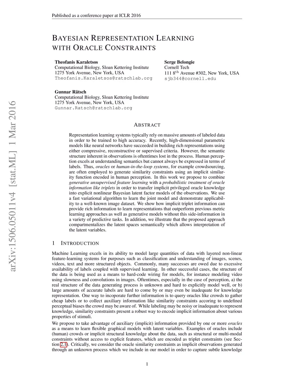 Bayesian representation learning with oracle constraints