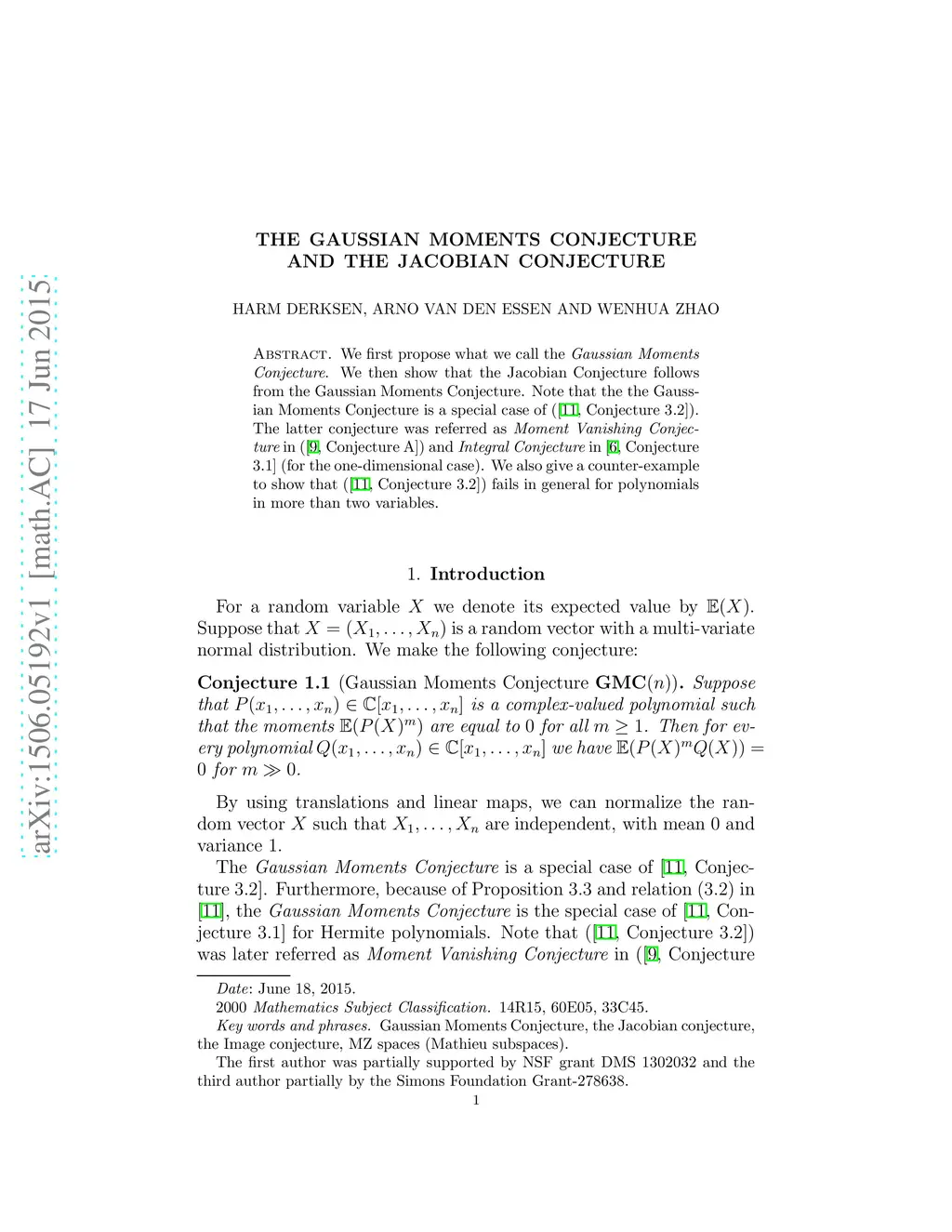 We first propose what we call the Gaussian Moments Conjecture. We then show that the Jacobian Conjecture follows from the Gaussian Moments Conjecture. We also give a counter-example to a more general statement known as the Moments Vanishing Conjecture .