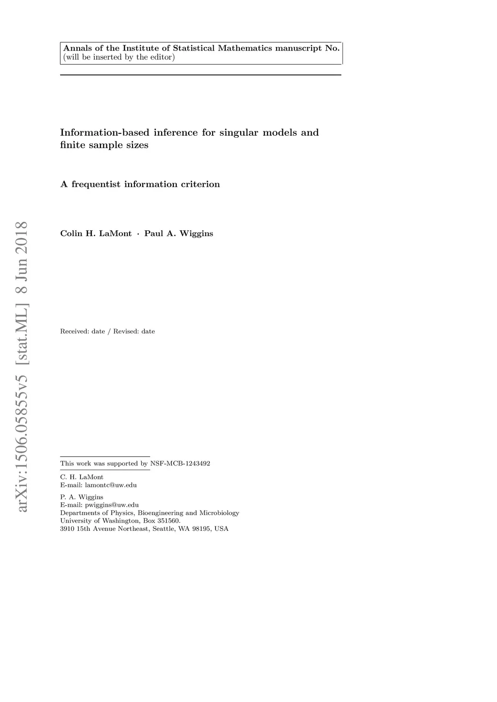 Information-based inference for singular models and finite sample sizes