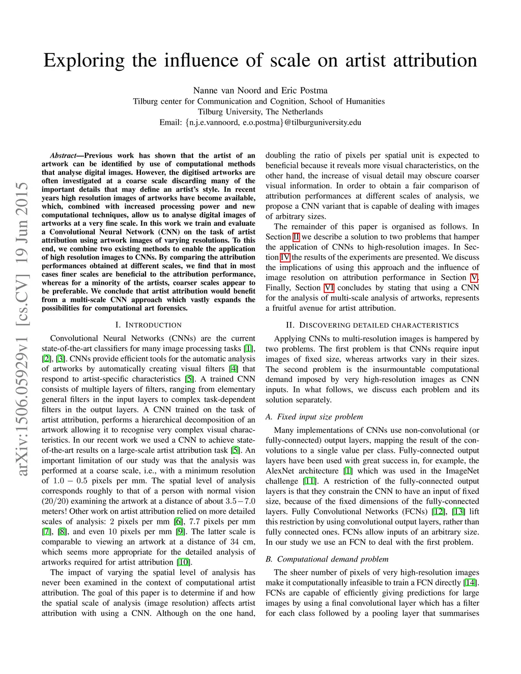 Previous work has shown that the artist of an artwork can be identified by use of computational methods that analyse digital images. However, the digitised artworks are often investigated at a coarse scale discarding many of the important details that may define an artist's style. In recent years high resolution images of artworks have become available, which, combined with increased processing power and new computational techniques, allow us to analyse digital images of artworks at a very fine scale. In this work we train and evaluate a Convolutional Neural Network (CNN) on the task of artist attribution using artwork images of varying resolutions. To this end, we combine two existing methods to enable the application of high resolution images to CNNs. By comparing the attribution performances obtained at different scales, we find that in most cases finer scales are beneficial to the attribution performance, whereas for a minority of the artists, coarser scales appear to be preferable. We conclude that artist attribution would benefit from a multi-scale CNN approach which vastly expands the possibilities for computational art forensics.