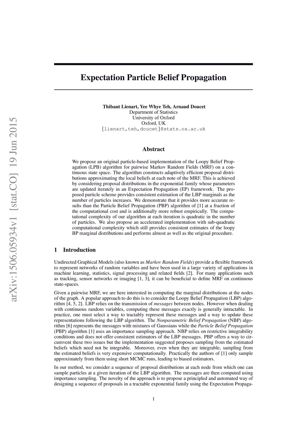 Expectation Particle Belief Propagation