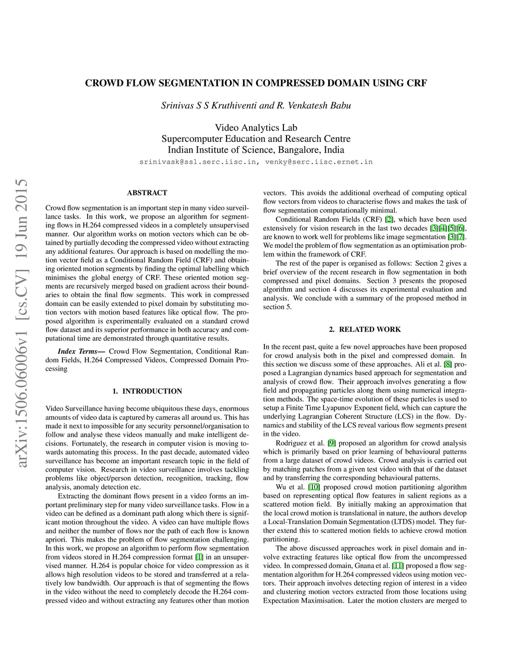 Crowd Flow Segmentation in Compressed Domain using CRF