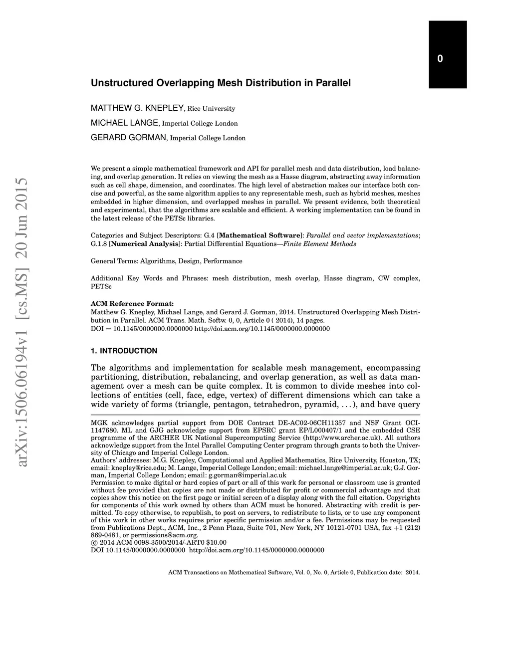 We present a simple mathematical framework and API for parallel mesh and data distribution, load balancing, and overlap generation. It relies on viewing the mesh as a Hasse diagram, abstracting away information such as cell shape, dimension, and coordinates. The high level of abstraction makes our interface both concise and powerful, as the same algorithm applies to any representable mesh, such as hybrid meshes, meshes embedded in higher dimension, and overlapped meshes in parallel. We present evidence, both theoretical and experimental, that the algorithms are scalable and efficient. A working implementation can be found in the latest release of the PETSc libraries.